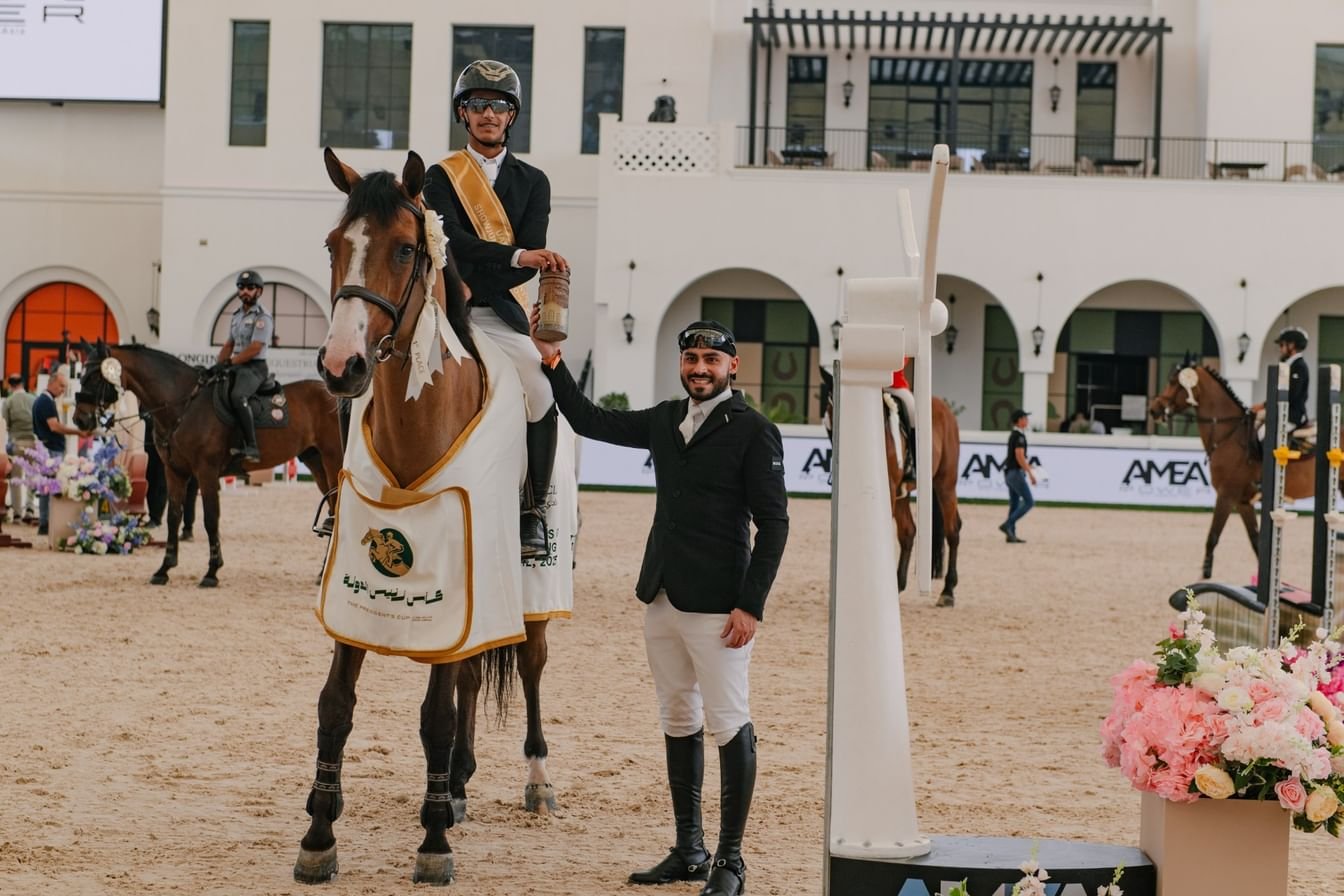 أبوظبي في 11 أبريل 2025. تصدر الشقيقان، محمد وعبد الله حمد الكربي، منافستي البطولة الدولية لقفز الحواجز “فئة النجمتين” التي انطلقت الأولى منها صباح اليوم بالتزامن مع الحدث الرئيسي، بطولة كأس صاحب السمو رئيس الدولة لقفز الحواجز من فئة خمس نجوم في نسختها الـ 14، بنادي أبوظبي للفروسية، وتختتم بعد غد.