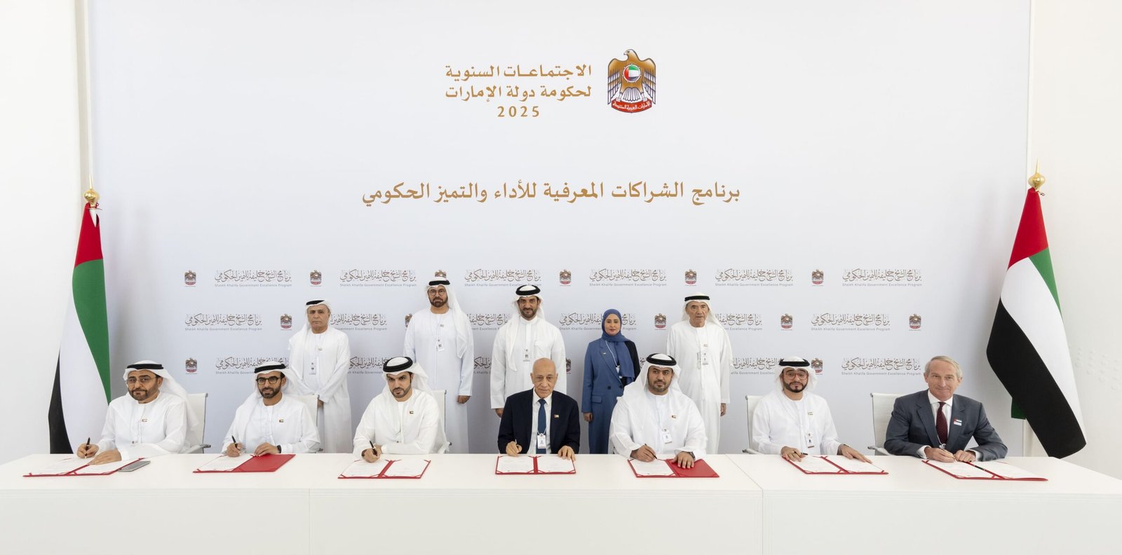 أبوظبي في 6 نوفمبر 2025 بحضور سمو الشيخ سلطان بن أحمد القاسمي نائب حاكم إمارة الشارقة نائب رئيس المجلس التنفيذي، رئيس جامعة الشارقة، أطلق مكتب رئاسة مجلس الوزراء في وزارة شؤون مجلس الوزراء عدداً من الشراكات الاستراتيجية المعرفية الجديدة في مجالات الأداء والتميّز الحكومي، بالتعاون مع عدد من الجامعات والمؤسسات الأكاديمية الوطنية الرائدة، وذلك ضمن فعاليات الاجتماعات السنوية لحكومة دولة الإمارات 2025.