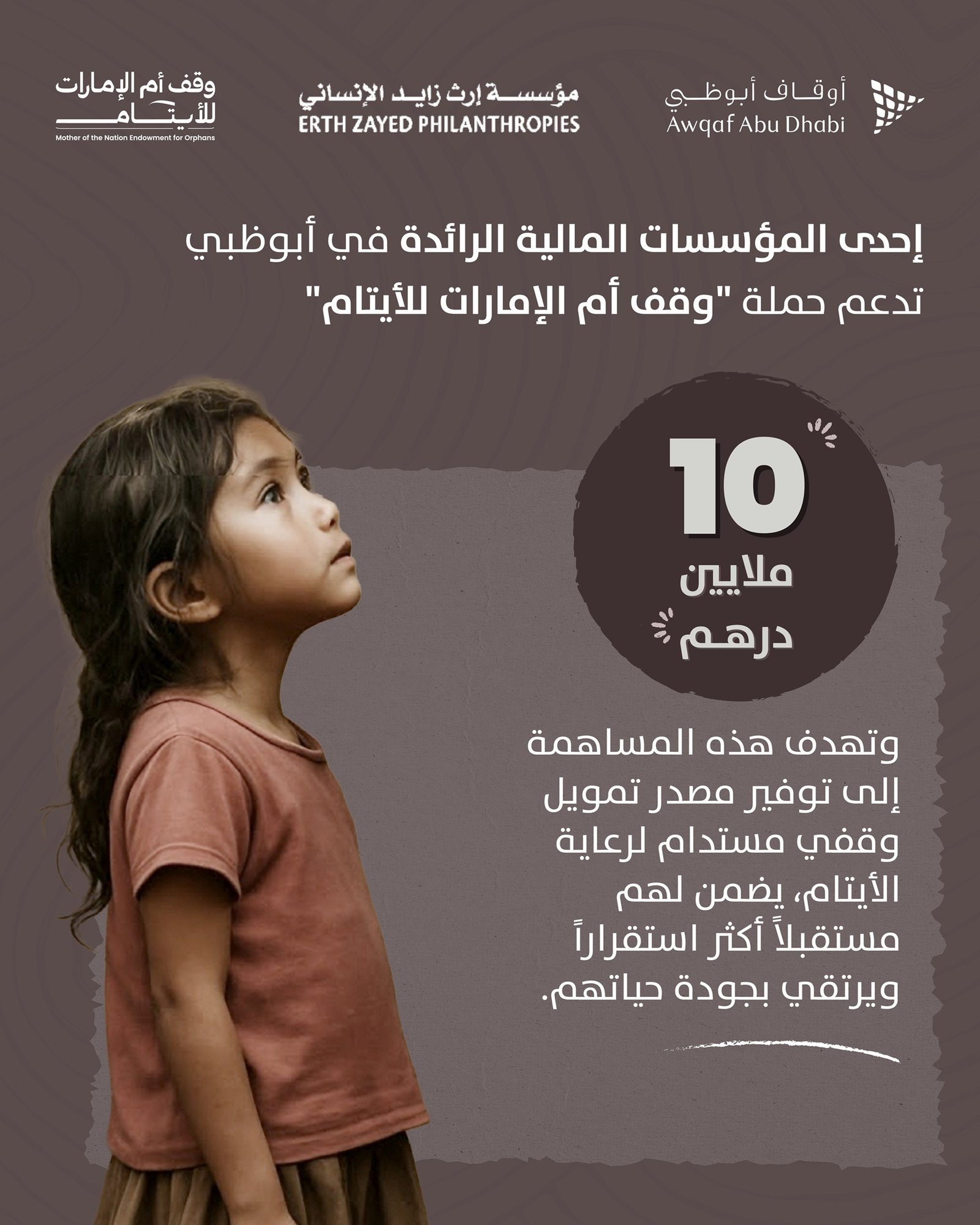 إحدى المؤسسات المالية الرائدة في أبوظبي تساهم بـ 10 ملايين درهم دعماً لحملة “وقف أم الإمارات للأيتام”
