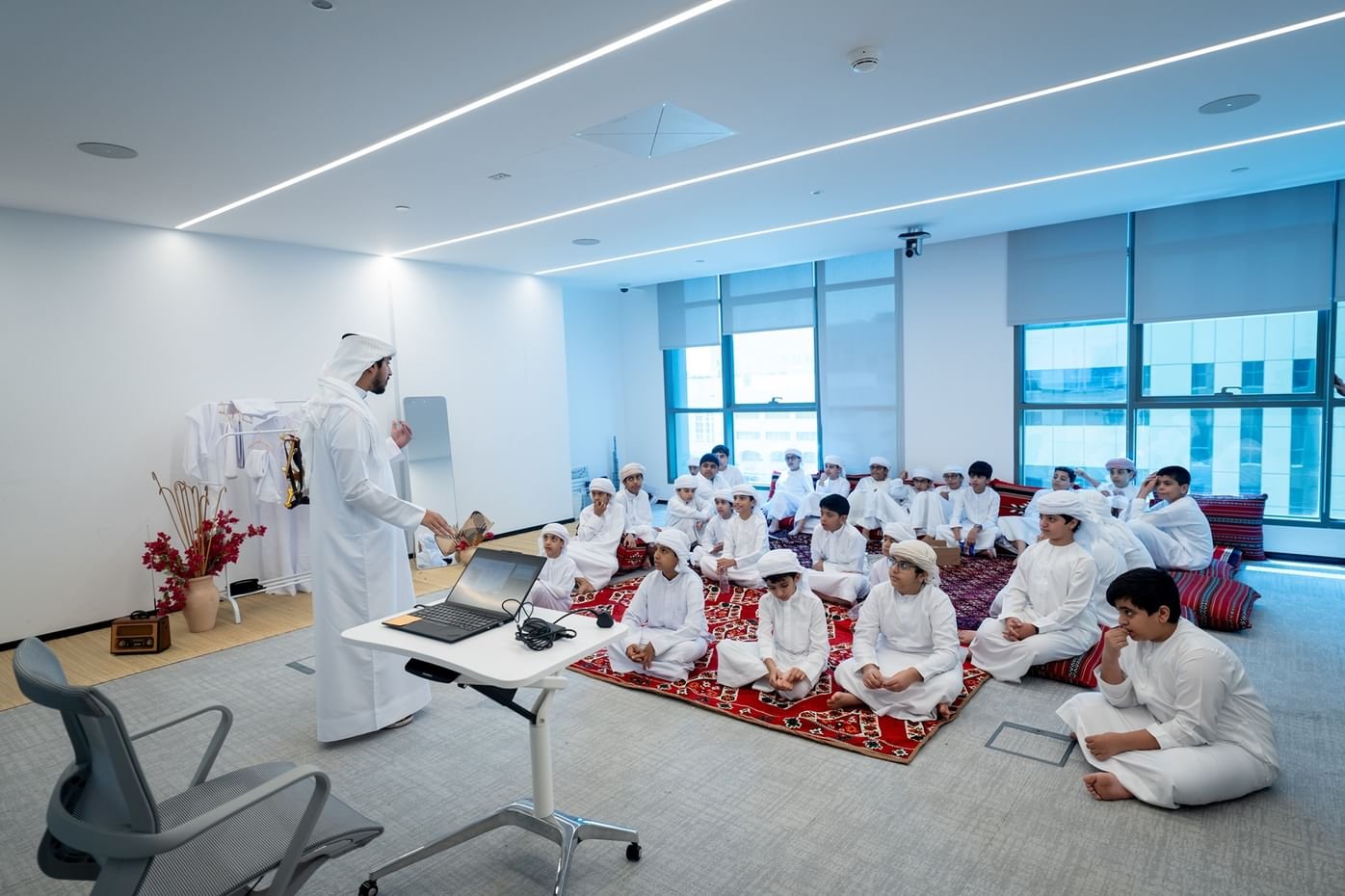 ويتعرف خلاله الفتيان على الأوجه الثقافية الإماراتية المتنوعة مثل فنون اليولة والرزفة وكيفية تحضير القهوة العربي،.