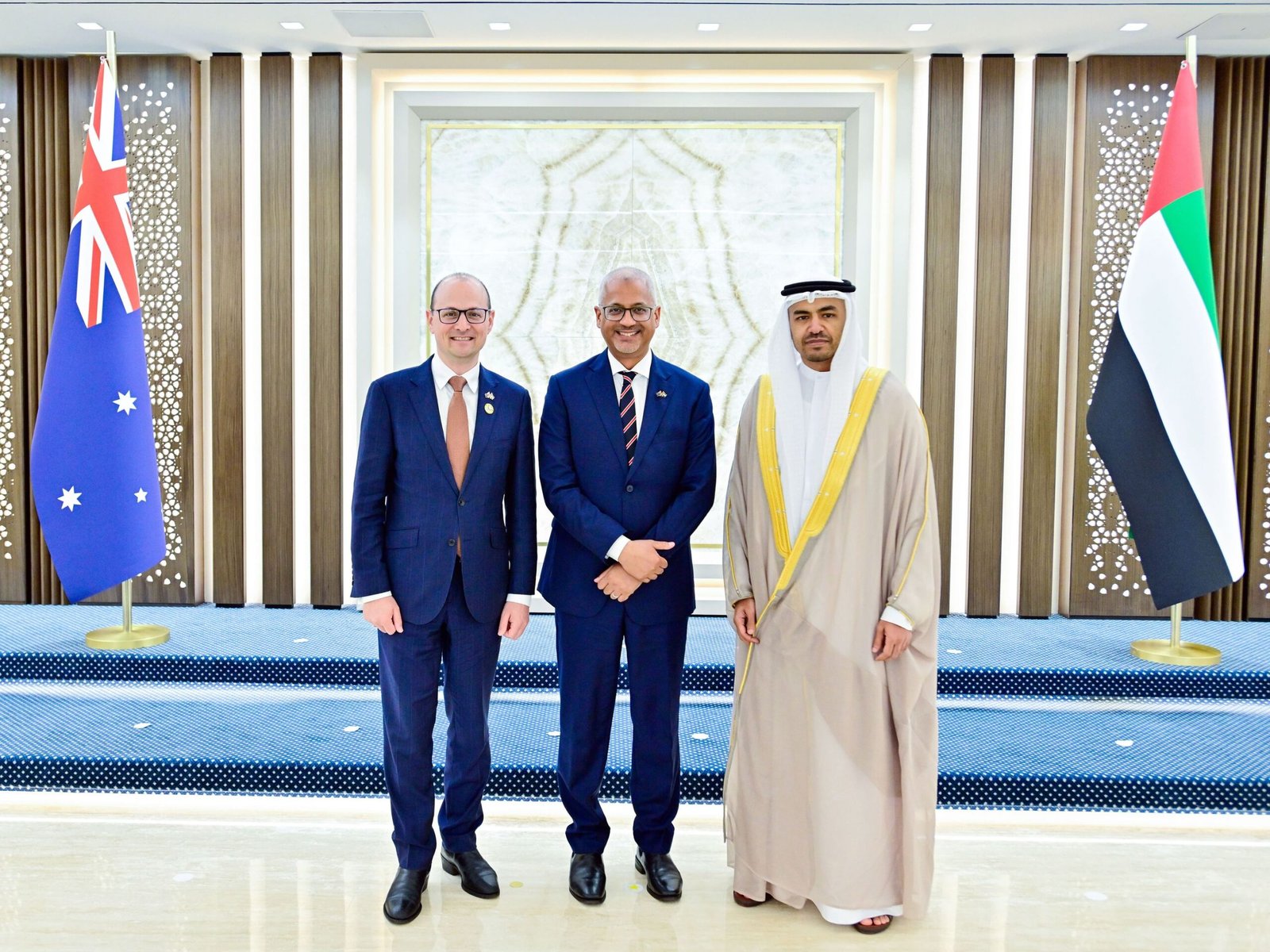 وأكد الجانبان خلال اللقاء قوة ومتانة علاقات الشراكة الإستراتيجية التي تربط دول الإمارات وأستراليا على مدى ما يقارب خمسة عقود، والتي تشمل التعاون في مجالات الاقتصاد والتعليم والصحة والدفاع والتنمية المستدامة، مشيرين إلى أن العلاقات الثنائية شهدت خلال السنوات الأخيرة نموا متسارعا، لاسيما في المجال الاقتصادي مع دخول اتفاقية الشراكة الاقتصادية الشاملة حيز التنفيذ في أكتوبر الماضي، والتي تعد خطوة هامة من شأنها تعزيز التبادل التجاري ورفع حجم الاستثمارات المشتركة، خصوصا في قطاعات الطاقة المتجددة، والبنية التحتية، والابتكار والتكنولوجيا والذكاء الاصطناعي.