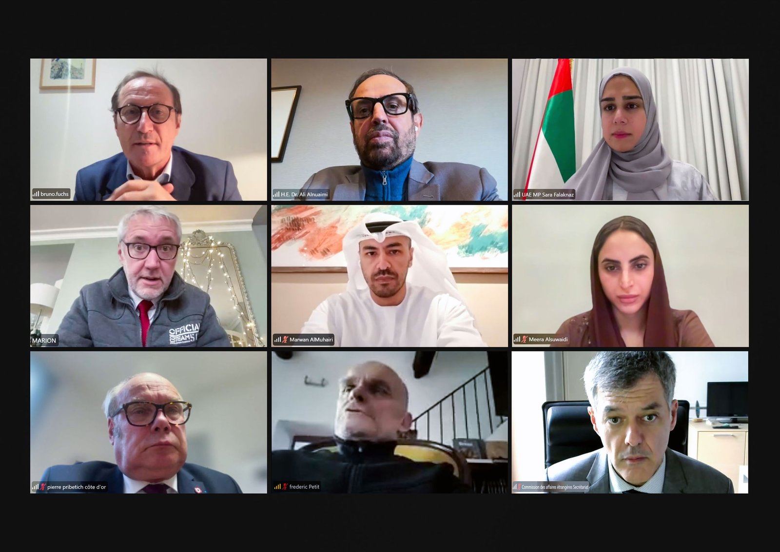 بحث معالي الدكتور علي راشد النعيمي رئيس لجنة شؤون الدفاع والداخلية والخارجية في المجلس الوطني الاتحادي، خلال اجتماع افتراضي، مع سعادة برونو فوكس رئيس لجنة الشؤون الخارجية في الجمعية الوطنية بجمهورية فرنسا، سبل تعزيز علاقات التعاون البرلماني بين الجانبين.