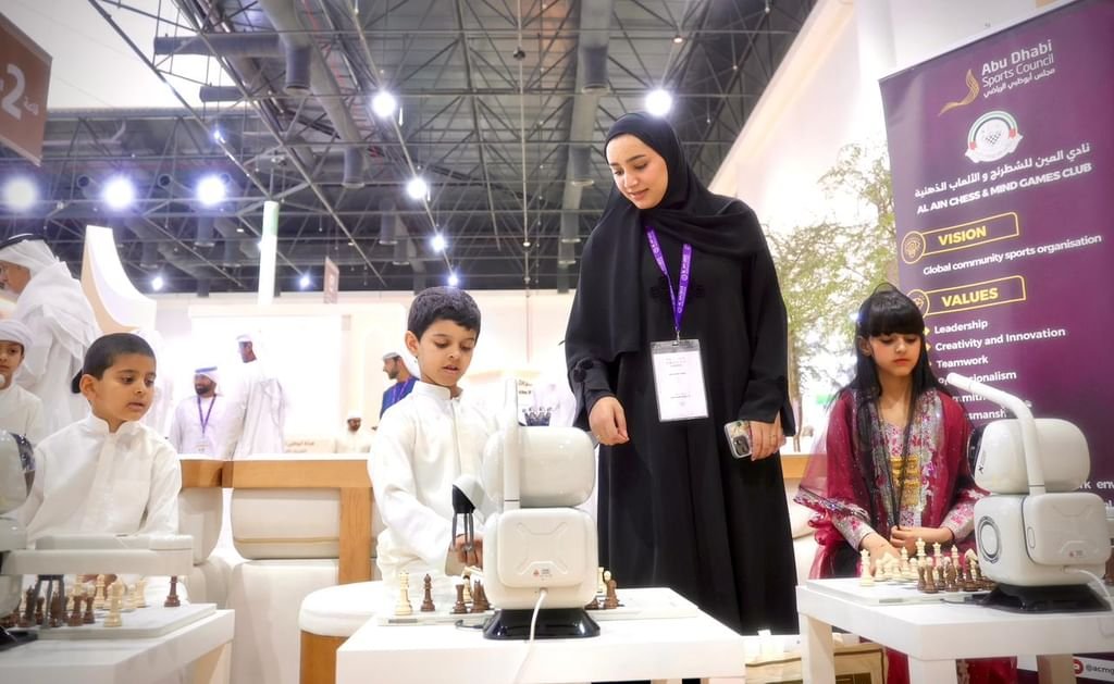 احتضن جناح نادي العين للشطرنج والألعاب الذهنية ضمن فعاليات معرض العين الدولي للصيد والفروسية، منافسات في لعبة الشطرنج بين “روبوت ذكي” وعدد من الزوار، بينهم لاعبة المنتخب الوطني وافية درويش المعمري.