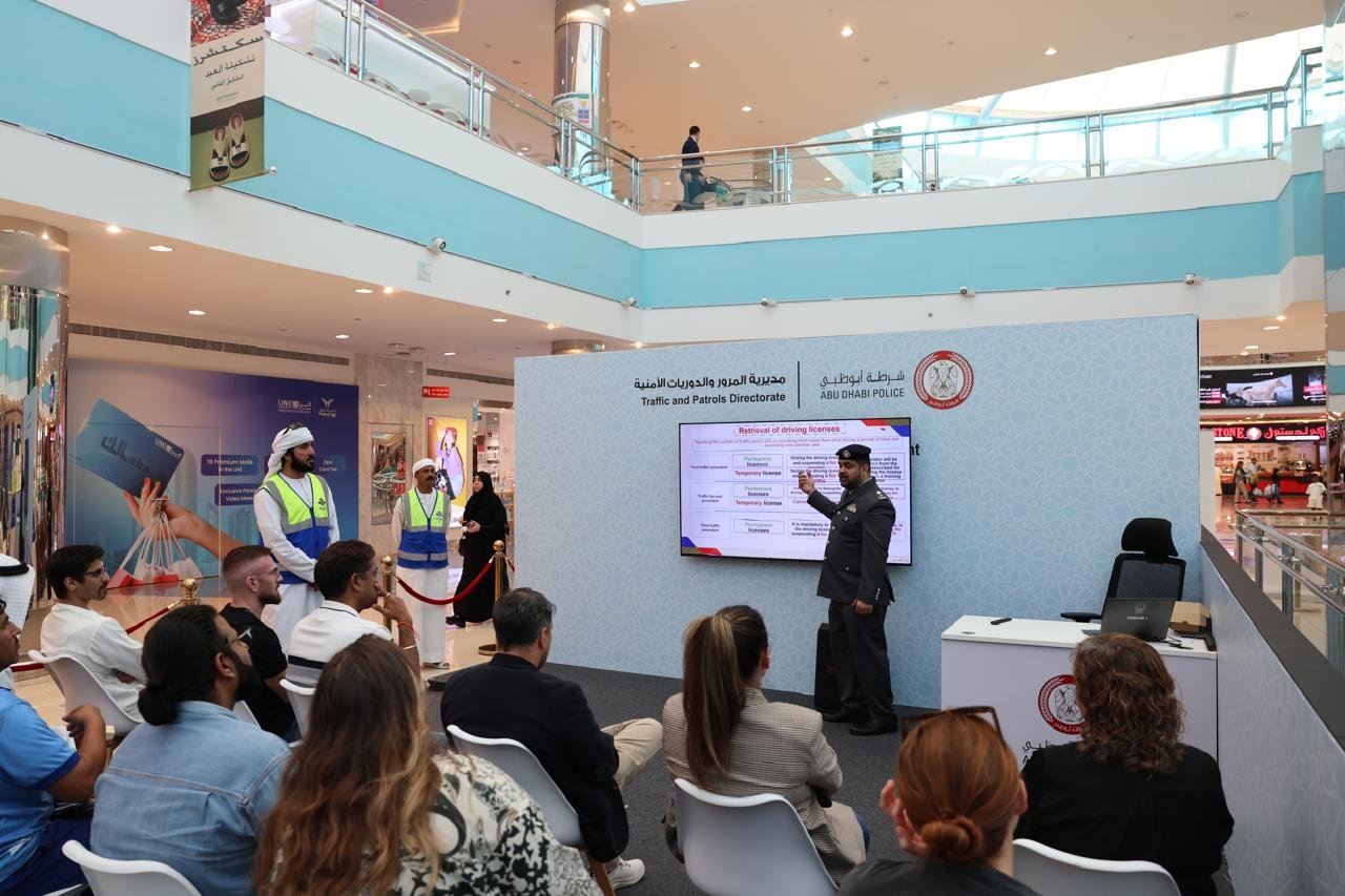 شرطة أبوظبي تقدم خدمة تخفيض النقاط المرورية عبر منصة ميدانية في “المشرف مول”