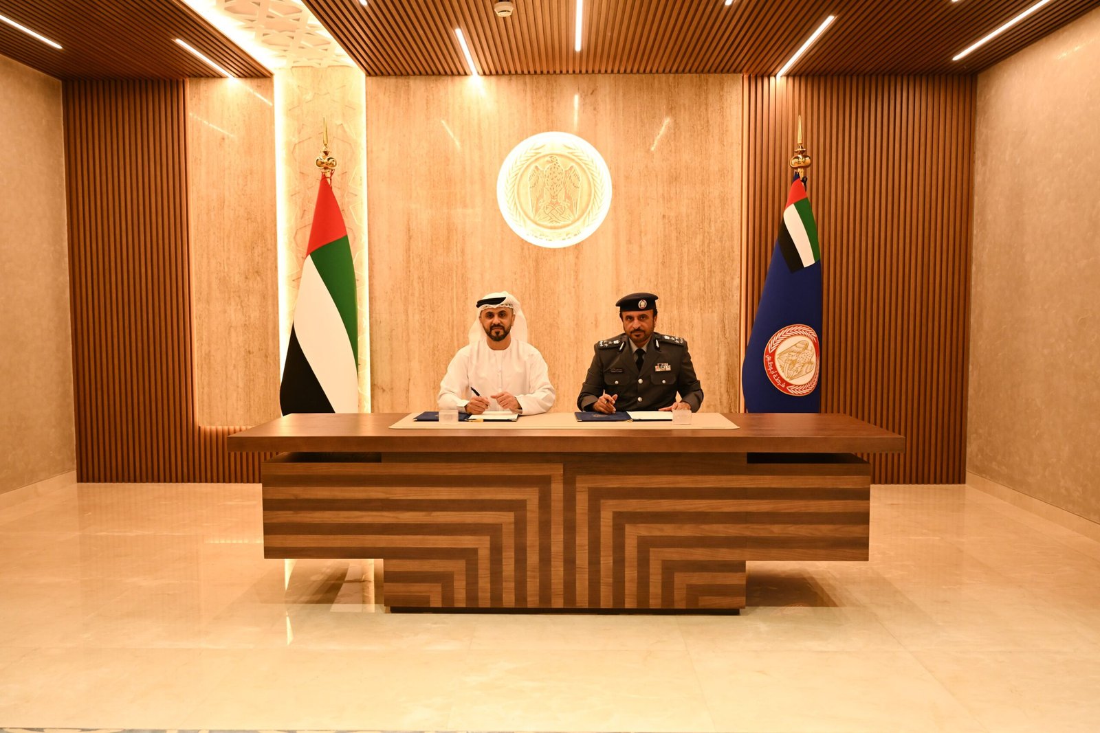 وقّع مذكرة التفاهم عن شرطة أبوظبي العميد محمد ضاحي الحميري، مدير قطاع العمليات المركزية، وحسن أحمد الحوسني، الرئيس التنفيذي للحلول الذكية في شركة “سبيس 42”.