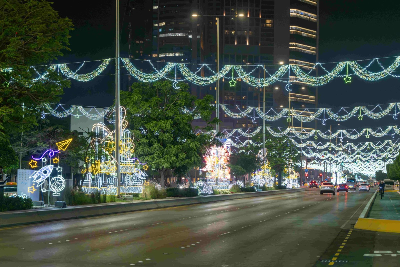 ولضمان سلامة مستخدمي الطرق، سواء من قائدي السيارات أو المشاة من أفراد المجتمع، فقد حرصت بلدية مدينة أبوظبي على أن تكون التشكيلات والمجسمات المضيئة التي تم تركيبها ضمن زينة عيد الفطر المبارك ذات أحجام مناسبة لأبعاد ومساحات الشوارع، حرصاً على سلامة الجميع.