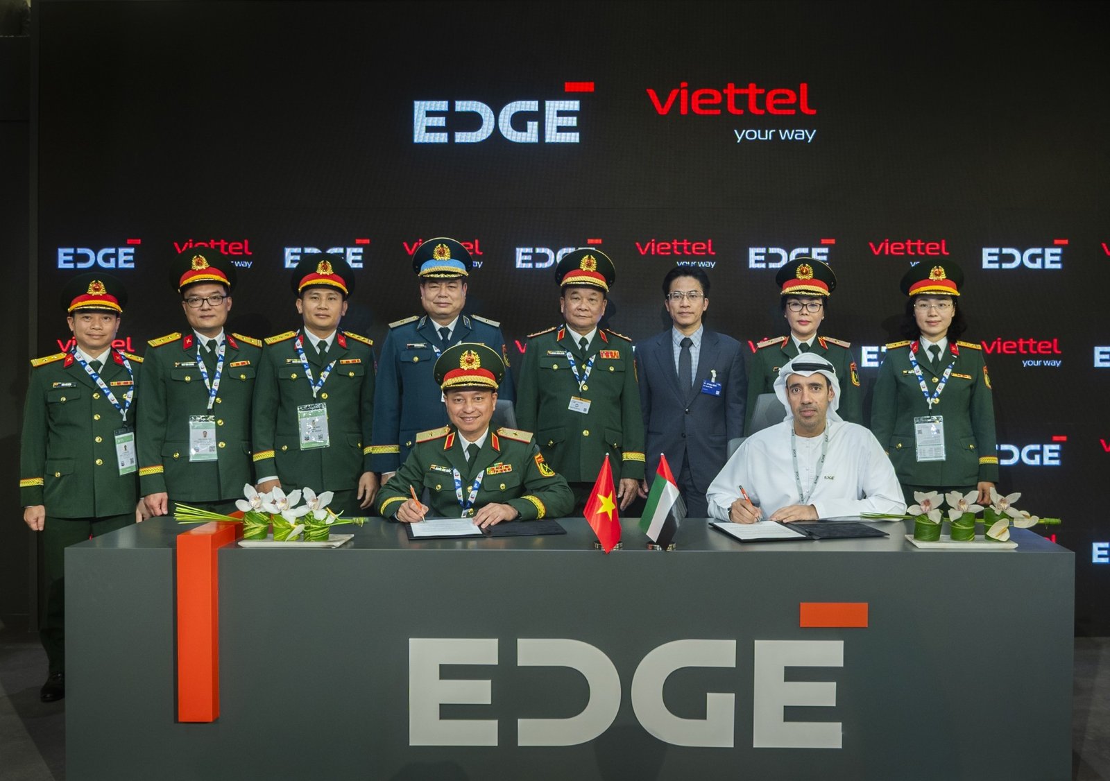وقع الاتفاقية عمر الزعابي، رئيس الشؤون التجارية في مجموعة ايدج، واللواء نجوين دينه تشيين، نائب رئيس مجموعة فيتل، بحضور الفريق أول هوانغ شوان تشين، نائب وزير الدفاع في فيتنام.