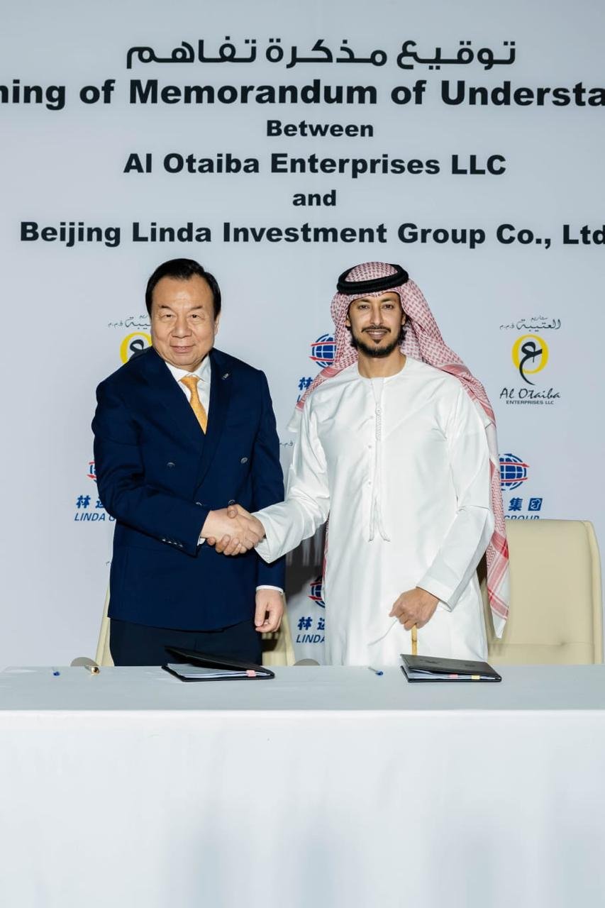 ووقع على الإتفاقية كل من سعادة عتيبة سعيد أحمد خلف العتيبة، رئيس مجلس إدارة شركة مشاريع العتيبة، والسيد لي شياولين، رئيس مجلس إدارة شركة بكين ليندا مينشنغ لإدارة الاستثمار المحدودة.