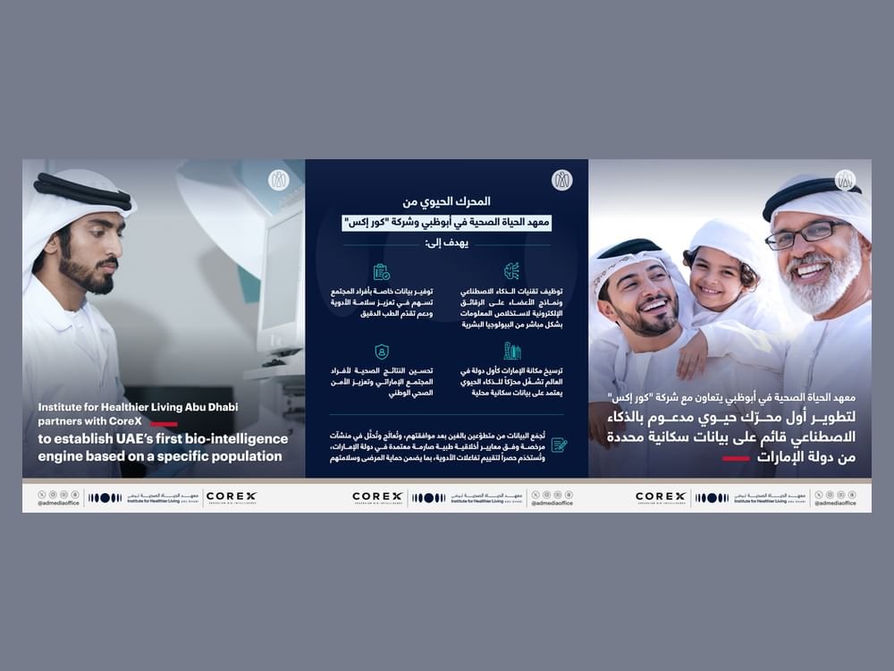 معهد الحياة الصحية في أبوظبي يتعاون مع “كور إكس” لتطوير أول محرّك حيوي مدعوم بالذكاء الاصطناعي قائم على بيانات سكانية محددة من دولة الإمارات