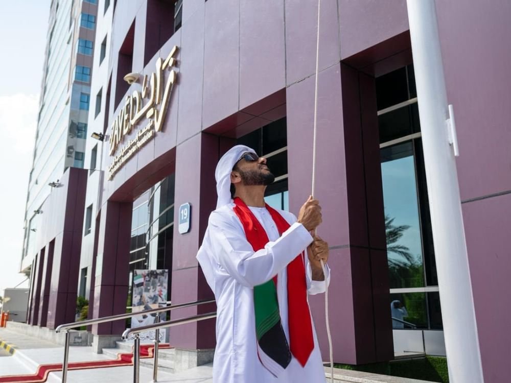 ورافق مراسم رفع العلم، عزف السلام الوطني لدولة الإمارات، بمشاركة الإدارة العليا وموظفي المؤسسة.