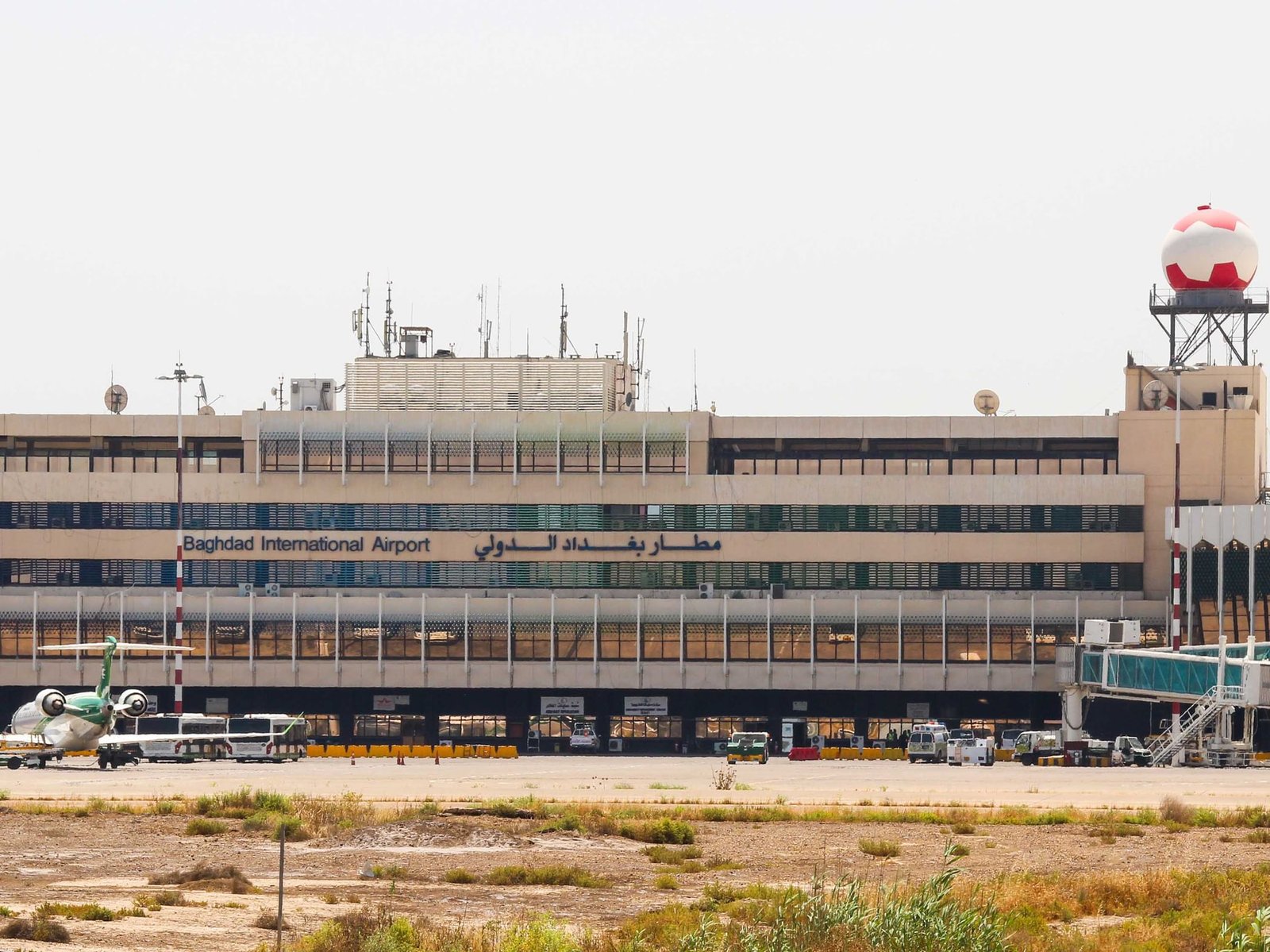 أُصيب 5 أشخاص، في هجوم على مجمّع مطار بغداد الدولي .