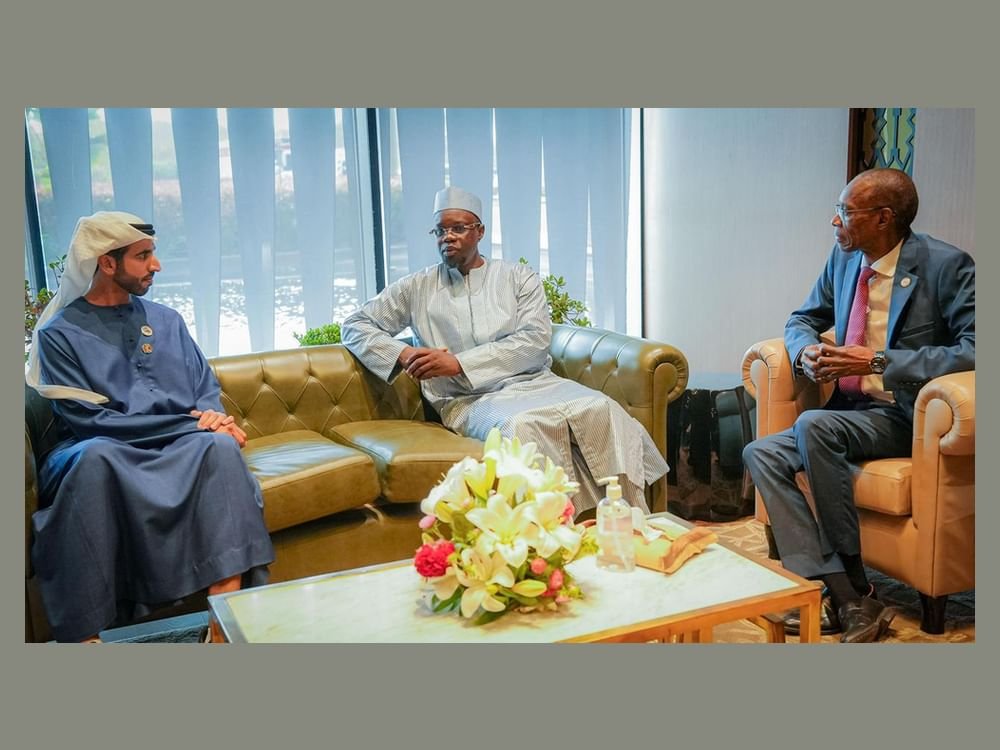 وعلى هامش المنتدى، عقد معاليه لقاءً ثنائيا مع معالي عثمان سونكو، رئيس وزراء جمهورية السنغال ، تناول اللقاء سبل تعزيز العلاقات الثنائية وتوسيع مجالات التعاون، إضافة إلى تبادل وجهات النظر حول أبرز القضايا الإقليمية والدولية ذات الاهتمام المشترك.