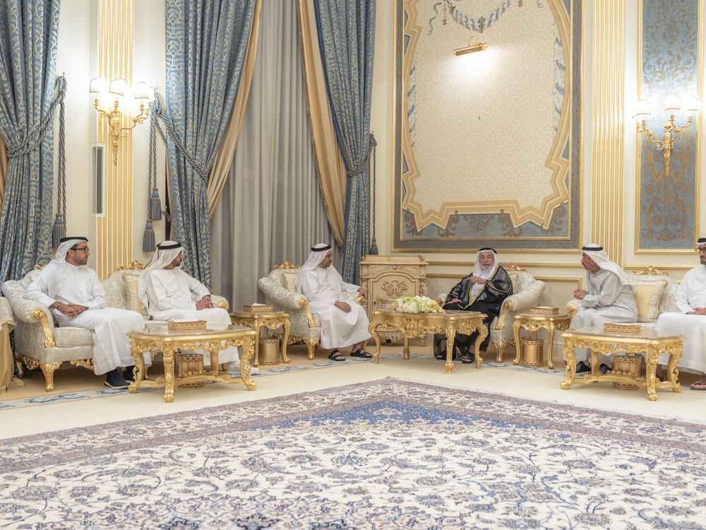 حاكم الشارقة يتبادل التهاني بشهر رمضان مع خليفة المرر ووفد وزارة الخارجية
