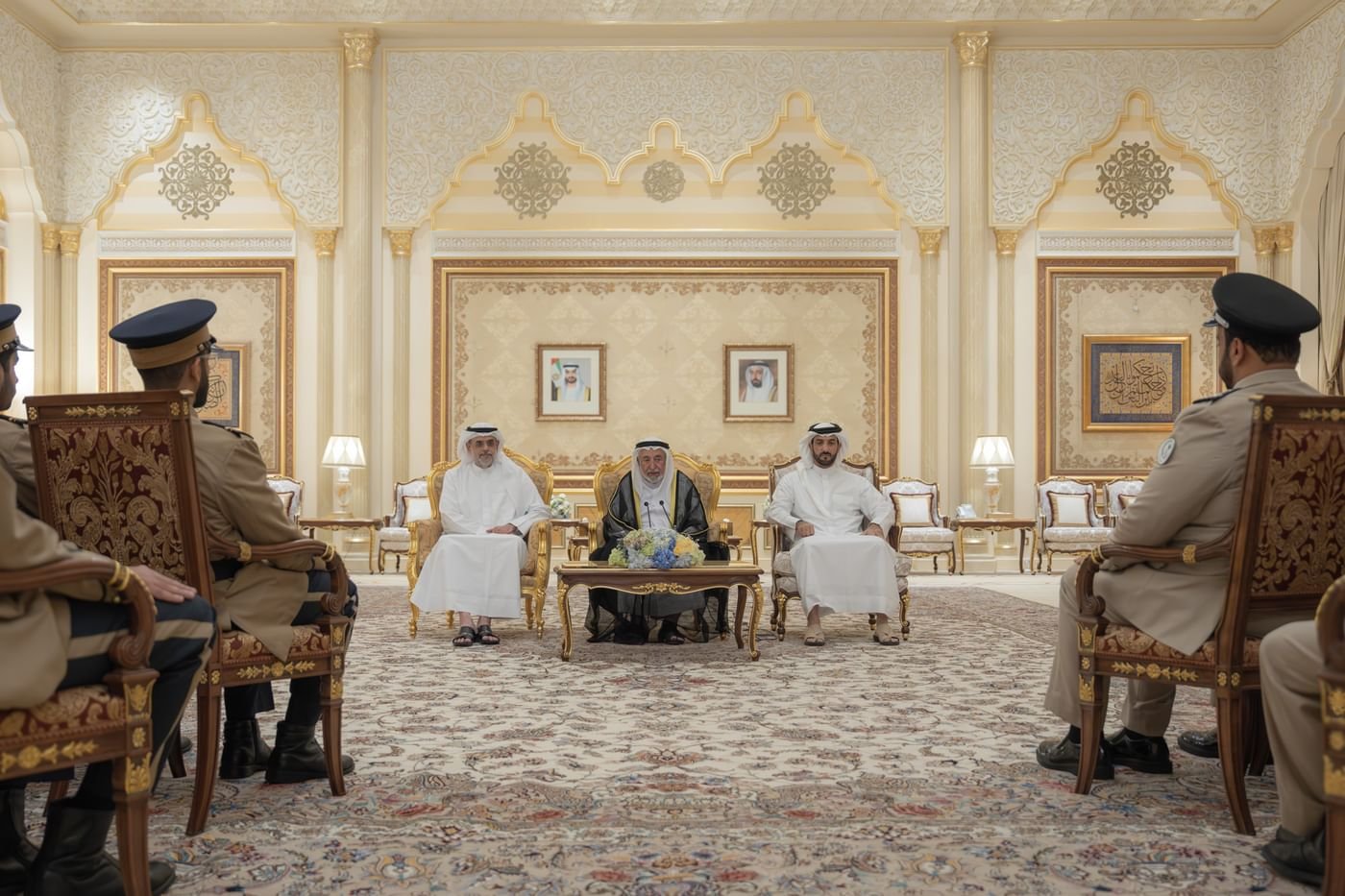 استقبل صاحب السمو الشيخ الدكتور سلطان بن محمد القاسمي عضو المجلس الأعلى حاكم الشارقة، مساء الأربعاء، بحضور سمو الشيخ سلطان بن محمد بن سلطان القاسمي ولي العهد نائب حاكم الشارقة، رئيس مجلس أكاديمية الشارقة للعلوم الشرطية، وسمو الشيخ سلطان بن أحمد بن سلطان القاسمي نائب حاكم الشارقة.. وفد أكاديمية الشارقة للعلوم الشرطية برئاسة العميد الدكتور محمد خميس العثمني مدير الأكاديمية، وعدد من كبار الضباط والكادر التدريسي والطلبة المرشحين في الأكاديمية، وذلك في قصر البديع العامر.
