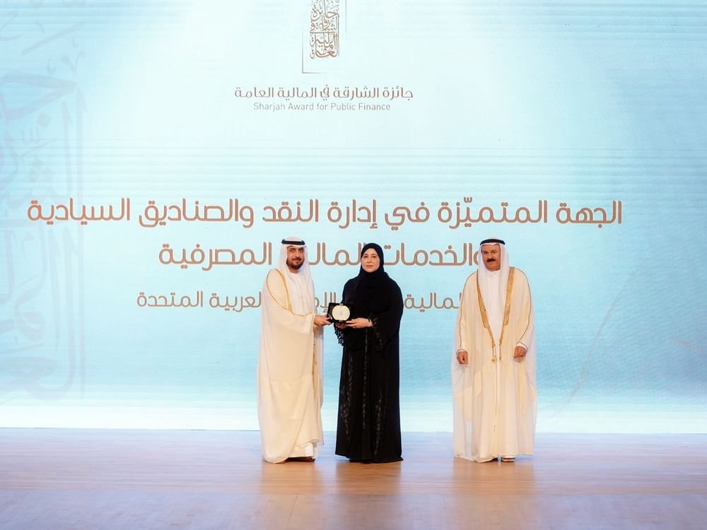 الشارقة في 26 مايو 2025. كرّم الشيخ محمد بن سعود القاسمي رئيس دائرة المالية المركزية بالشارقة الفائزين في النسخة الثالثة من جائزة الشارقة في المالية العامة وذلك خلال حفل أُقيم اليوم في مسرح قصر الثقافة بالشارقة بحضور وزراء و وكلاء و رؤساء و مديري عموم الجهات الحكومية العربية الفائزة وعدد من كبار المسؤولين رؤساء ومدراء الدوائر المحلية وممثلي القطاع المالي في الدولة والمشاركين من الدول العربية المختلفة و شركاء الجائزة من الرعاة.