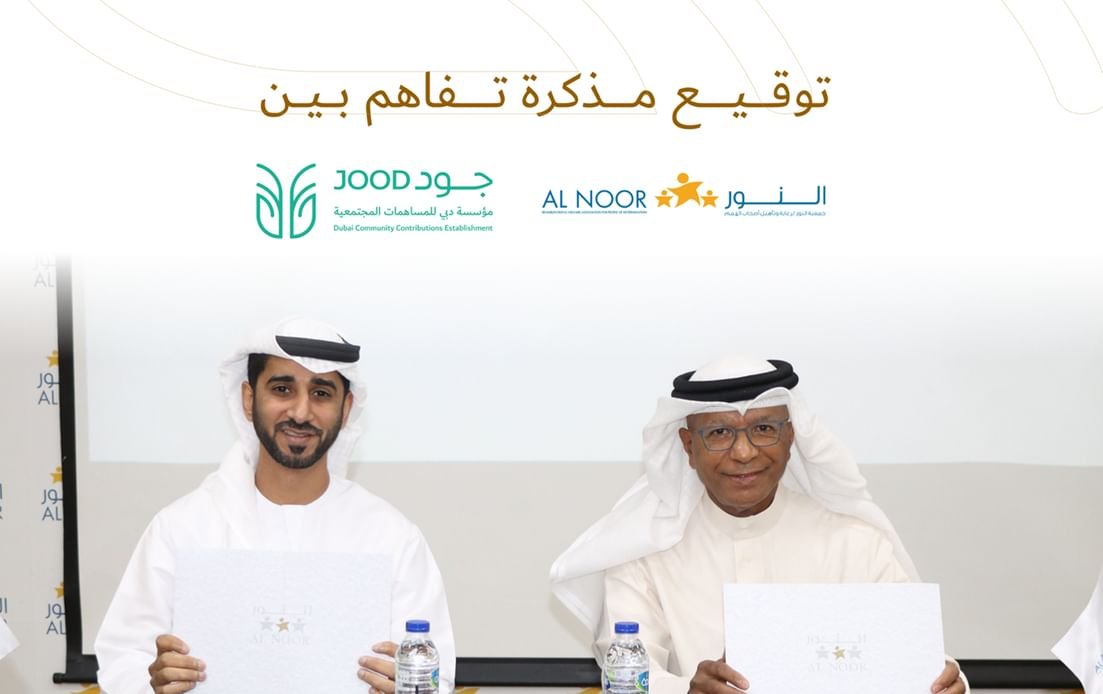 وقعت مؤسسة دبي للمساهمات المجتمعية “جود” مذكرة تفاهم مع جمعية النور لرعاية وتأهيل أصحاب الهمم بهدف تعزيز التعاون في مجال المساهمات المجتمعية وتنظيم المبادرات والفعاليات الخيرية وجمع المساهمات عبر منصة “جود” لدعم خدمات الجمعية.
