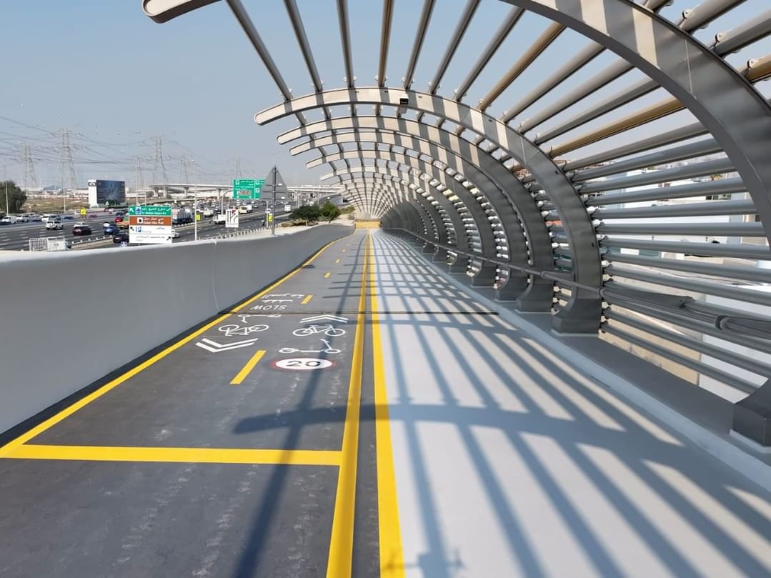 أنجزت هيئة الطرق والمواصلات في دبي 13 مساراً للدراجات الهوائية من أصل 15 مساراً تعمل على تنفيذها بطول إجمالي يبلغ 162 كيلومتراً، تغطي مختلف مناطق الإمارة، وذلك ضمن خطة شاملة لرفع إجمالي أطوال مسارات الدراجات الهوائية إلى 1000 كيلومتر بحلول عام 2030، بالتوازي مع تنفيذ جسور للمشاة والدراجات تُعد الأكبر في الإمارة، تشمل جسوراً على شوارع الشيخ محمد بن زايد ودبي ـ العين والشيخ زايد والخيل، لتعزيز الربط بين المسارات وتحسين انسيابية الحركة.