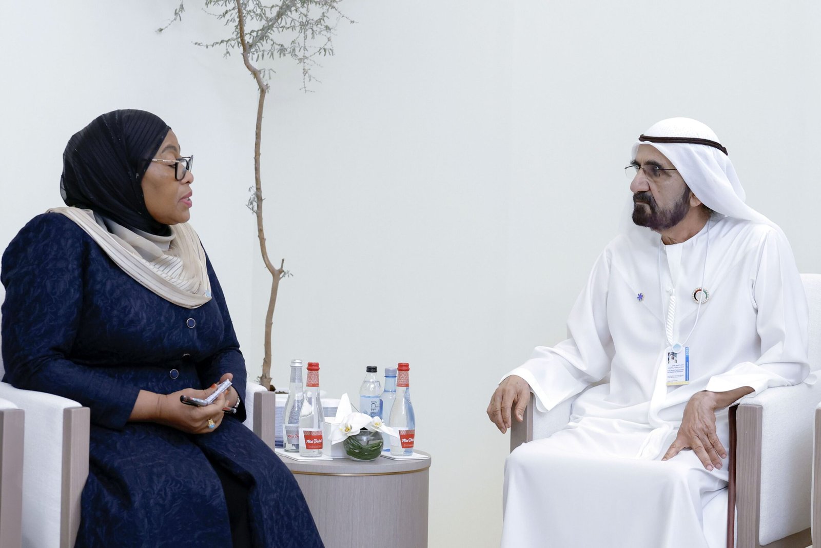 وبحث صاحب السموّ الشيخ محمد بن راشد آل مكتوم مع فخامة رئيسة جمهورية تنزانيا المتحدة العلاقات الثنائية المتميزة بين البلدين الصديقين، وسبل تعزيز وتطوير التعاون المشترك في مختلف المجالات، وخاصة الاقتصادية والتنموية والاستثمارية، والتبادل التجاري والثقافي.