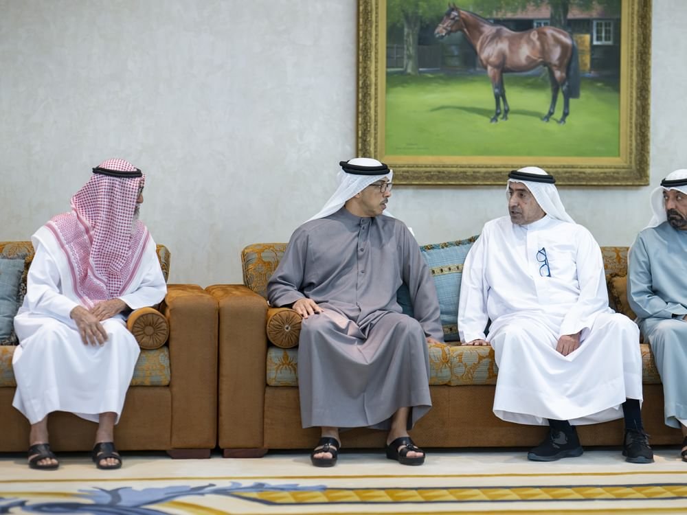 منصور بن زايد يقدم العزاء في وفاة محمد بن عبيد آل مكتوم