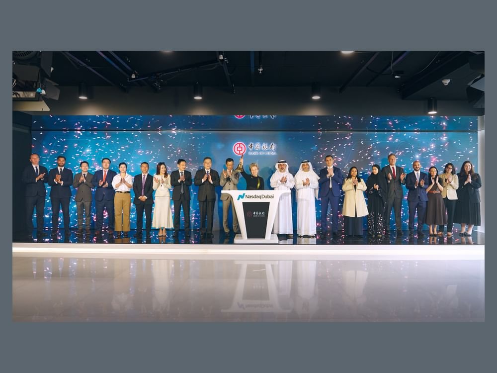 دبي في 8 ديسمبر 2025. حّبت ناسداك دبي بإدراج ناجح لسندات بسعر فائدة متغير بقيمة 500 مليون دولار صادرة عن بنك الصين فرع دبي، ضمن برنامج السندات متوسطة الأجل الخاص بالبنك، والبالغة قيمته 40 مليار دولار.
