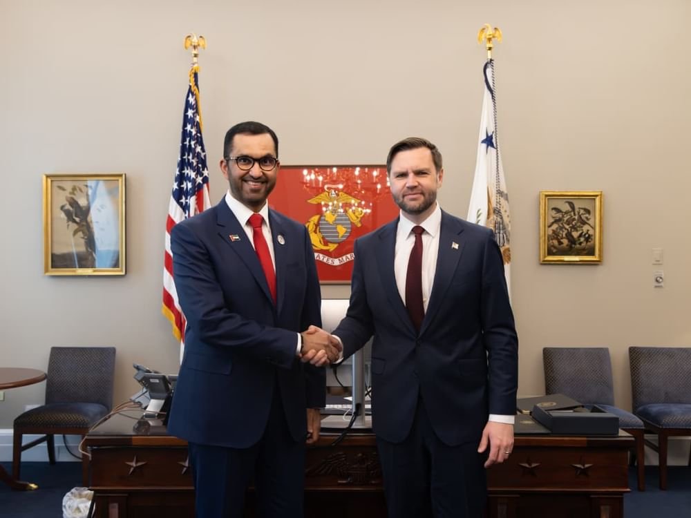 واشنطن في 25 مارس 2026 استقبل معالي جي دي فانس، نائب الرئيس الأمريكي اليوم معالي الدكتور سلطان أحمد الجابر، وزير الصناعة والتكنولوجيا المتقدمة، العضو المنتدب والرئيس التنفيذي لأدنوك ومجموعة شركاتها، في البيت الأبيض بالعاصمة الأمريكية واشنطن.