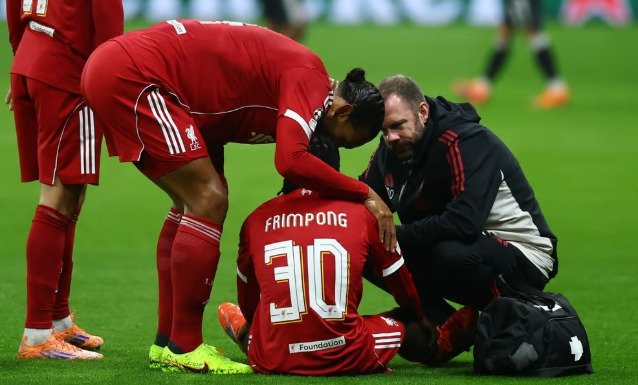 أعلن أرني سلوت، مدرب ليفربول، أن لاعبه جيريمي فريمبونج سيغيب لعدة أسابيع، بسبب إصابة في العضلة الضامة.