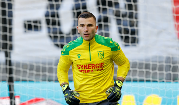 تظاهر البرتغالي أنتوني لوبيز، حارس مرمى نانت، بالإصابة، خلال لقاء لوهافر، في الجولة 23 من عمر الدوري الفرنسي.