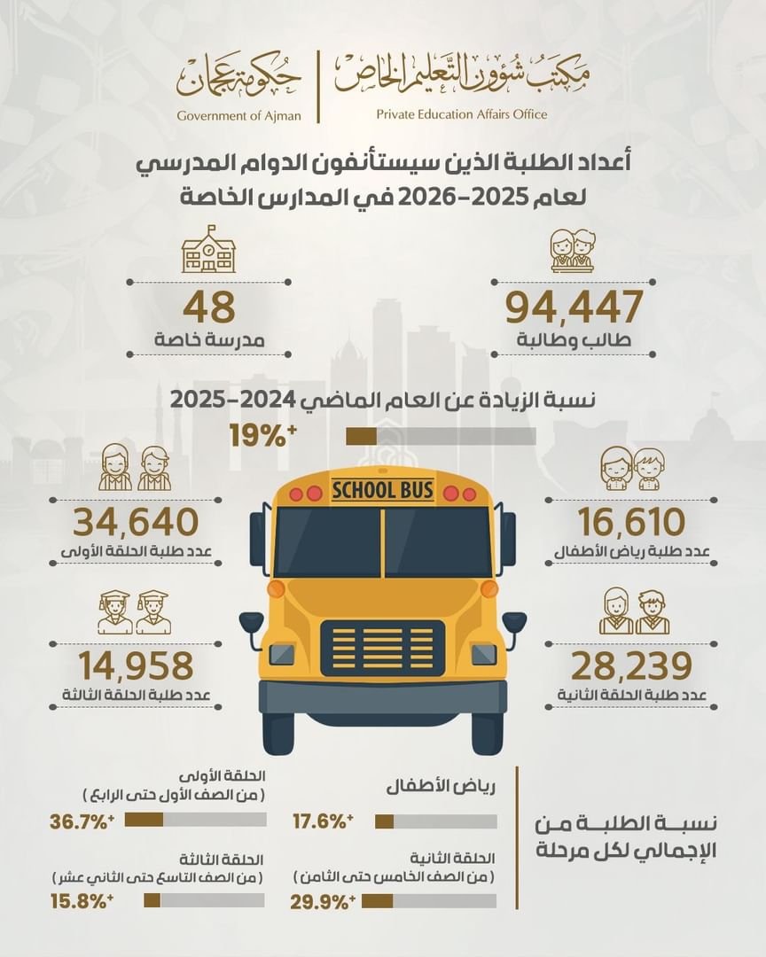 الإثنين ..استئناف الدراسة في المدارس الخاصة بعجمان