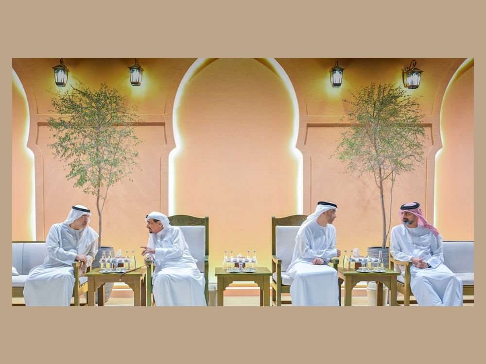 حاكم عجمان وولي عهده يتقبلان التهاني بشهر رمضان من العويس والزيودي ووجهاء القبائل