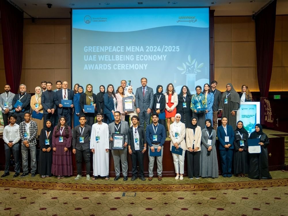 عجمان في 11 أبريل 2025. أعلنت غرينبيس الشرق الأوسط وشمال أفريقيا، بالتعاون مع جامعة عجمان، وشبكة المناخ الجامعية عن أسماء الفائزين بجائزة “اقتصاد الرفاه في الإمارات” وهي مبادرة رائدة تكرّم المساهمات النوعية للباحثين والمبتكرين الشباب في مجال الاستدامة والابتكار في دولة الإمارات ومنطقة مجلس التعاون الخليجي.